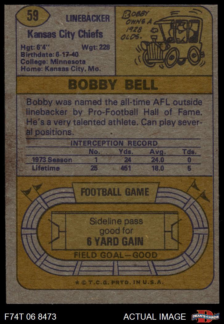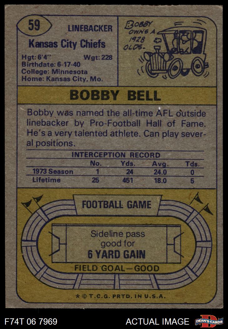 1974 Topps #59 Bobby Bell 3 - VG