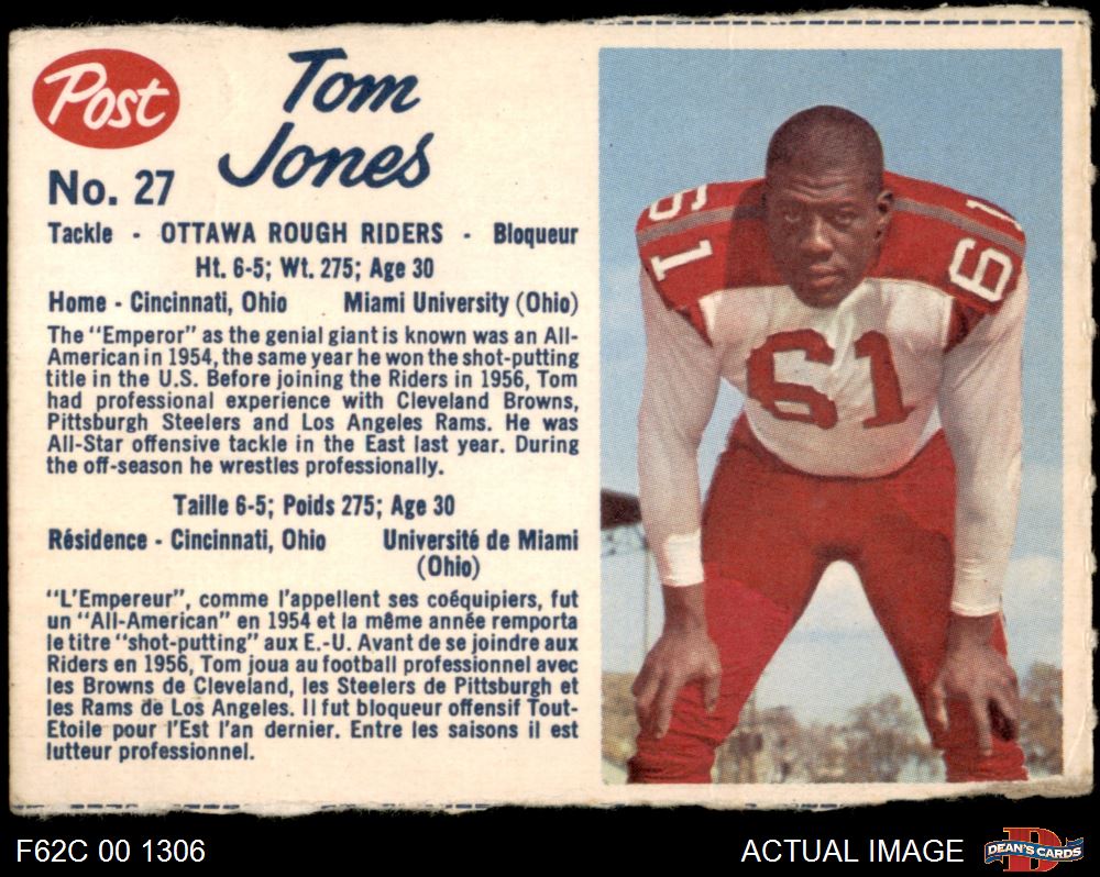 1962 Post Cereal CFL Football Cards (45 available)1962 Post Cereal CFL Rough Riders (10 available)