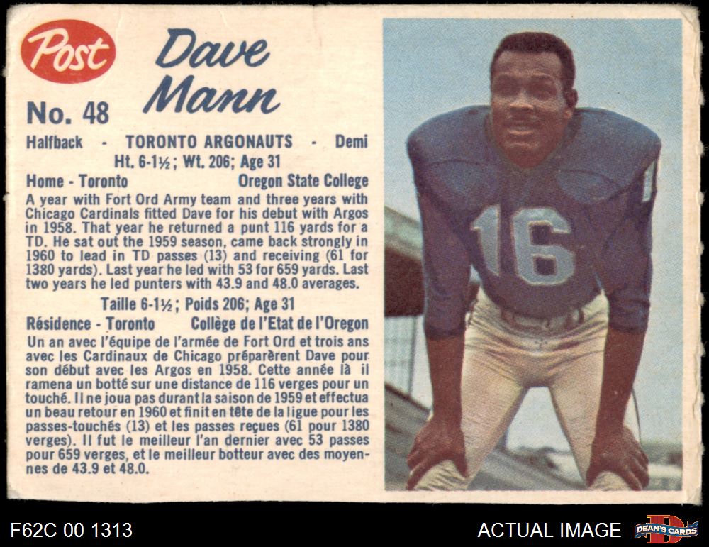 1962 Post Cereal CFL Football Cards (45 available)1962 Post Cereal CFL Argonauts (7 available)