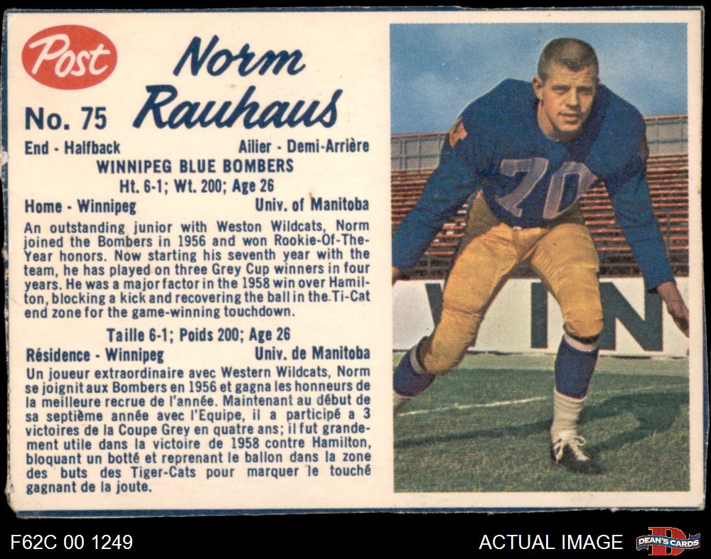 1962 Post Cereal CFL #75 Norm Rauhaus