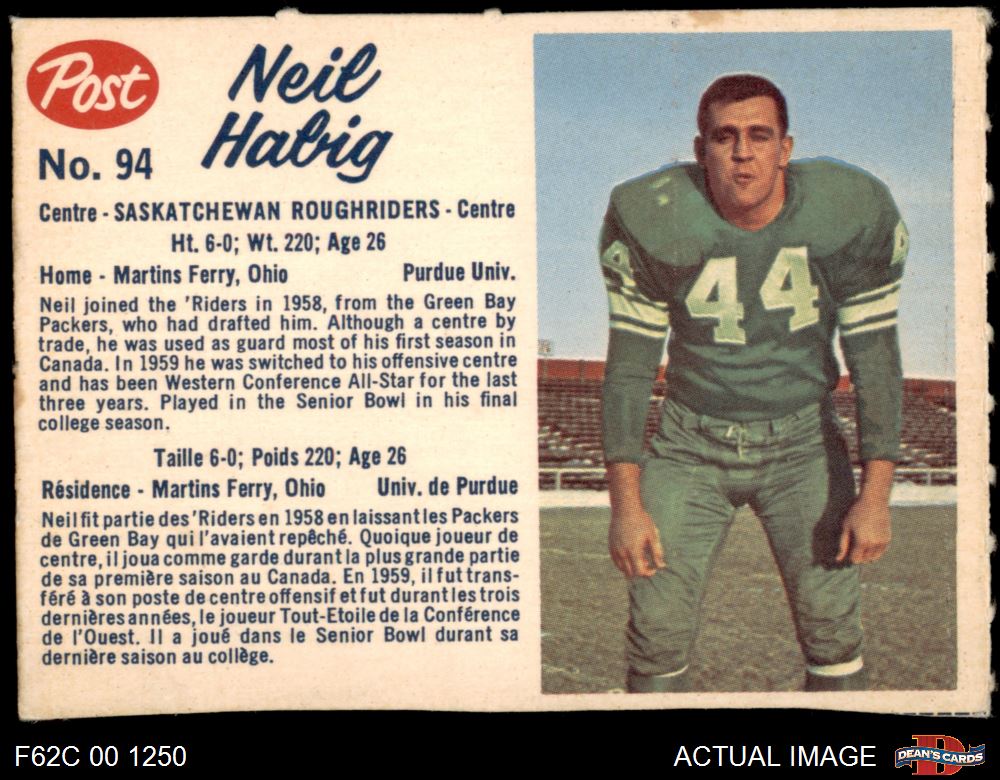 1962 Post Cereal CFL Football Cards (45 available)1962 Post Cereal CFL Rough Riders (12 available)