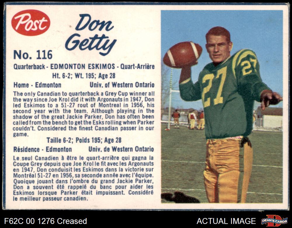 1962 Post Cereal CFL #116 Don Getty Front Thumbnail