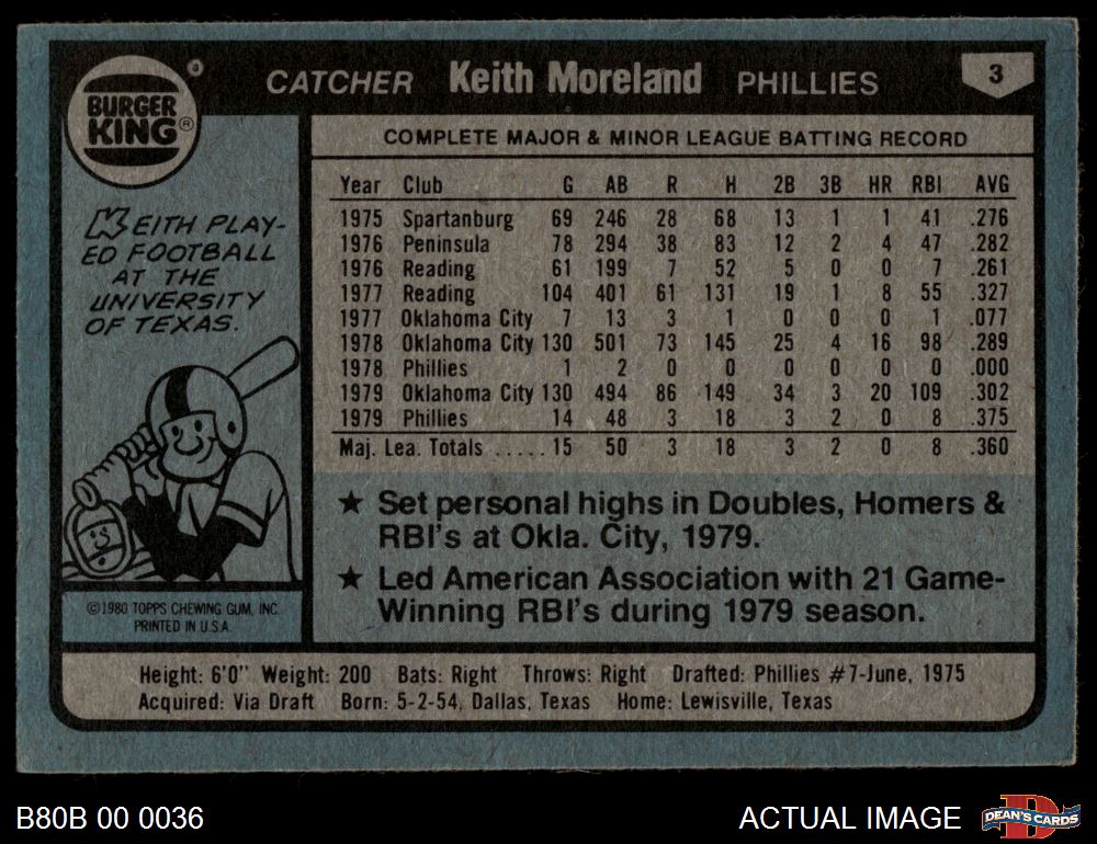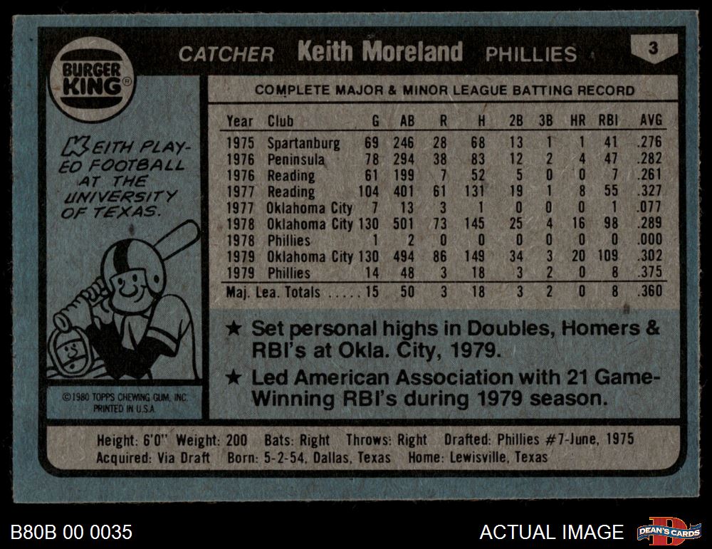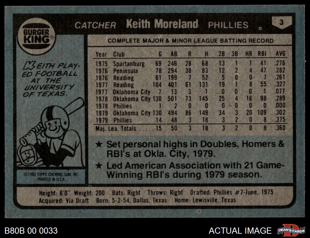 1980 Burger King Phillies #3 Keith Moreland 5 - EX