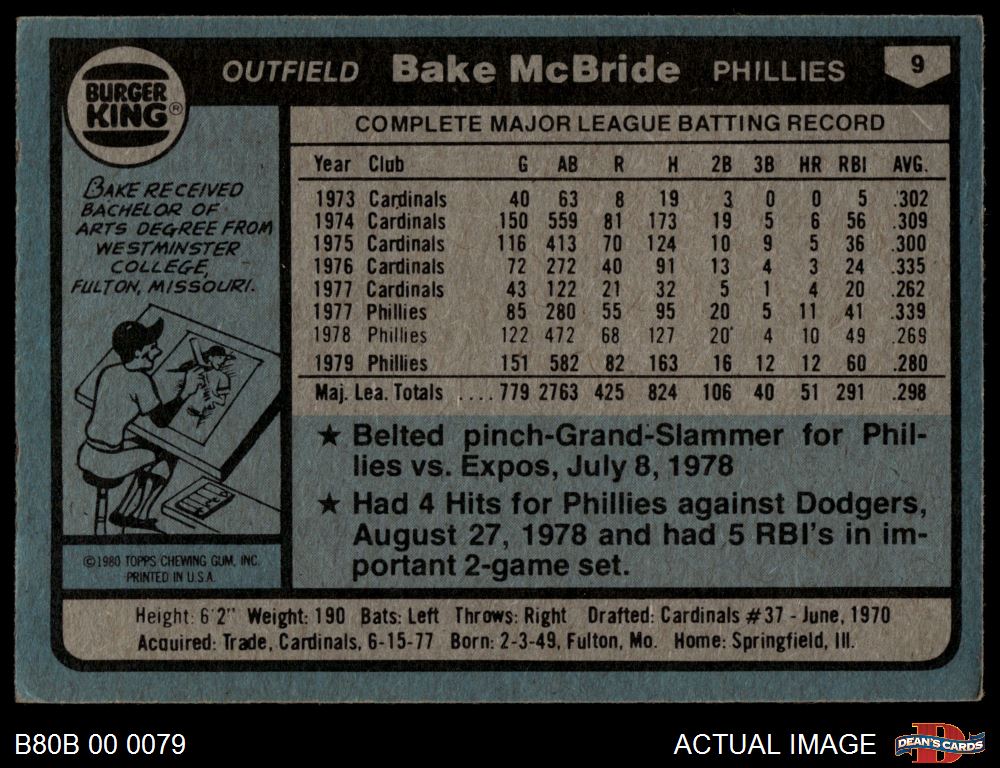 1980 Burger King Phillies #9 Bake McBride 4 - VG/EX