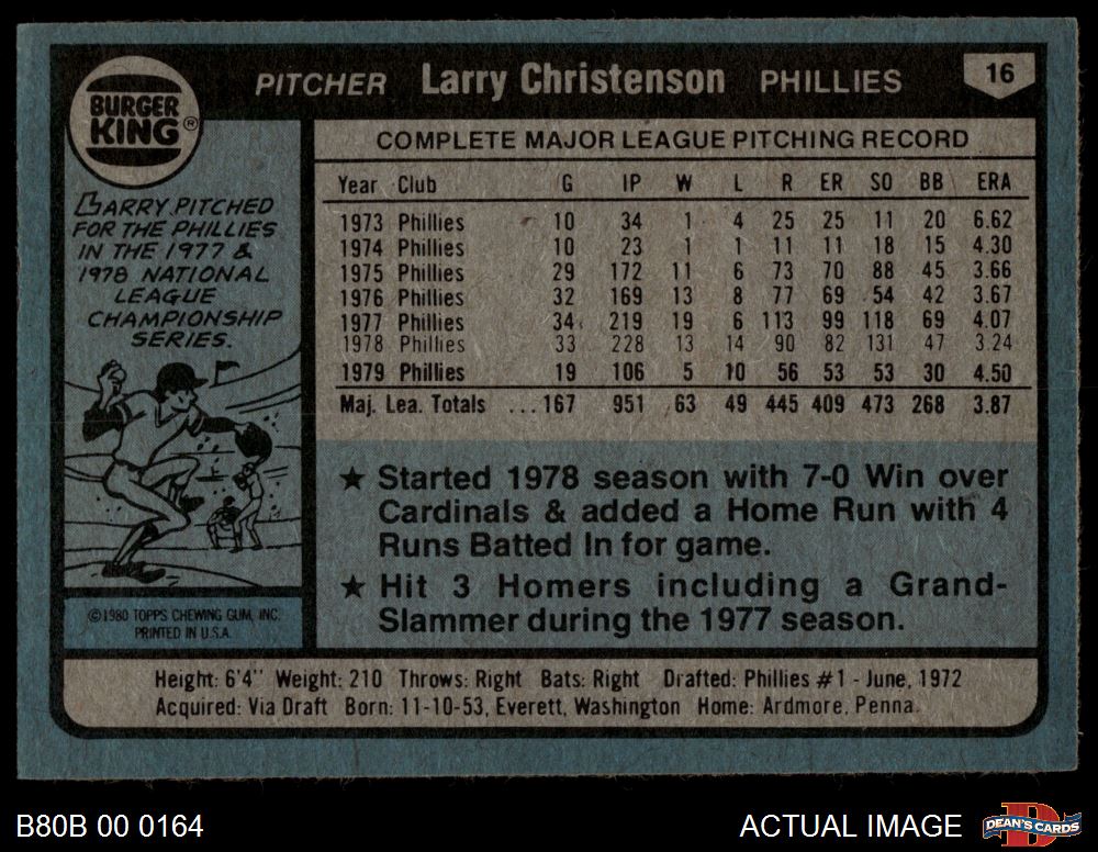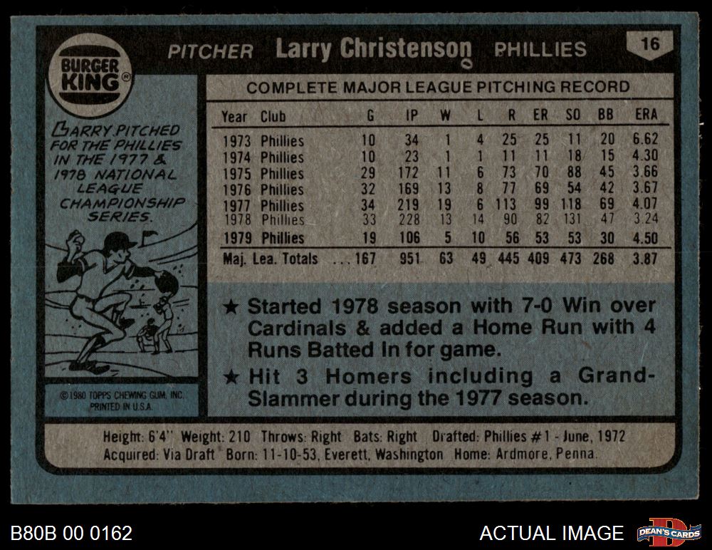 1980 Burger King Phillies #16 Larry Christenson 4 - VG/EX