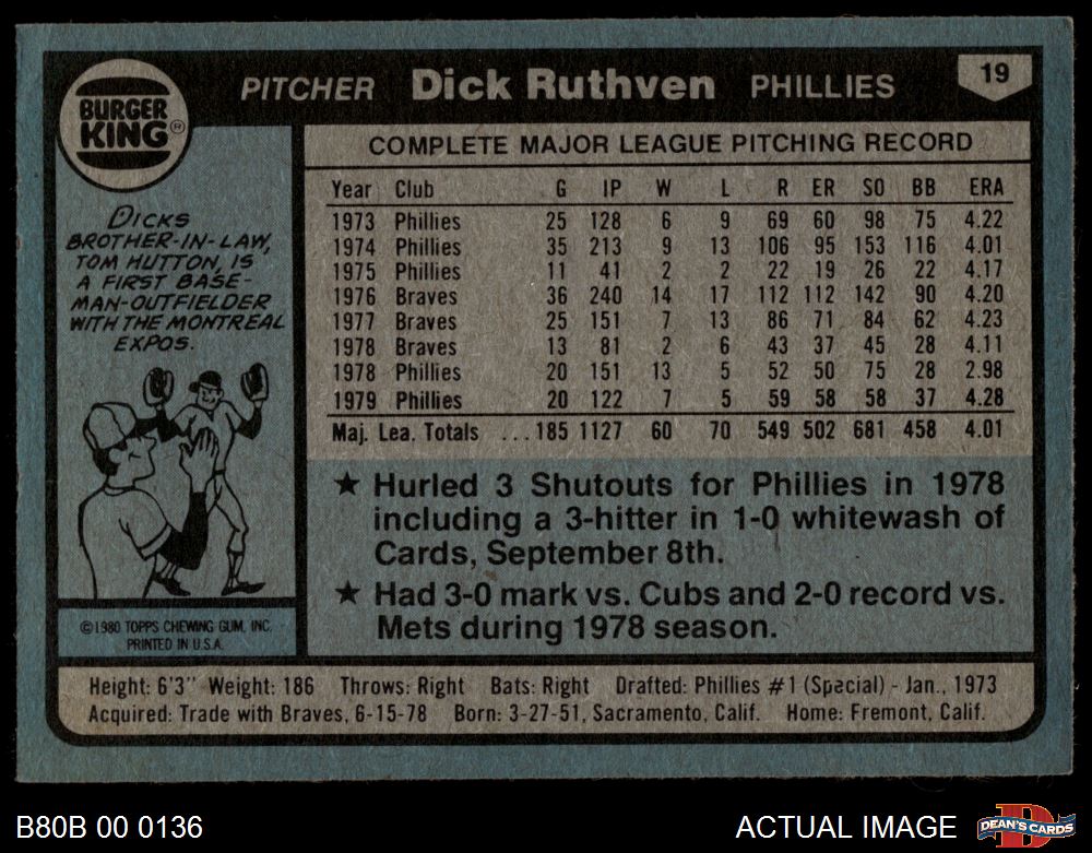 1980 Burger King Phillies #19 Dick Ruthven 5 - EX