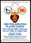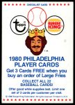 1980 Topps Burger King Phillies (228 available)1980 Burger King Phillies Phillies (228 available)