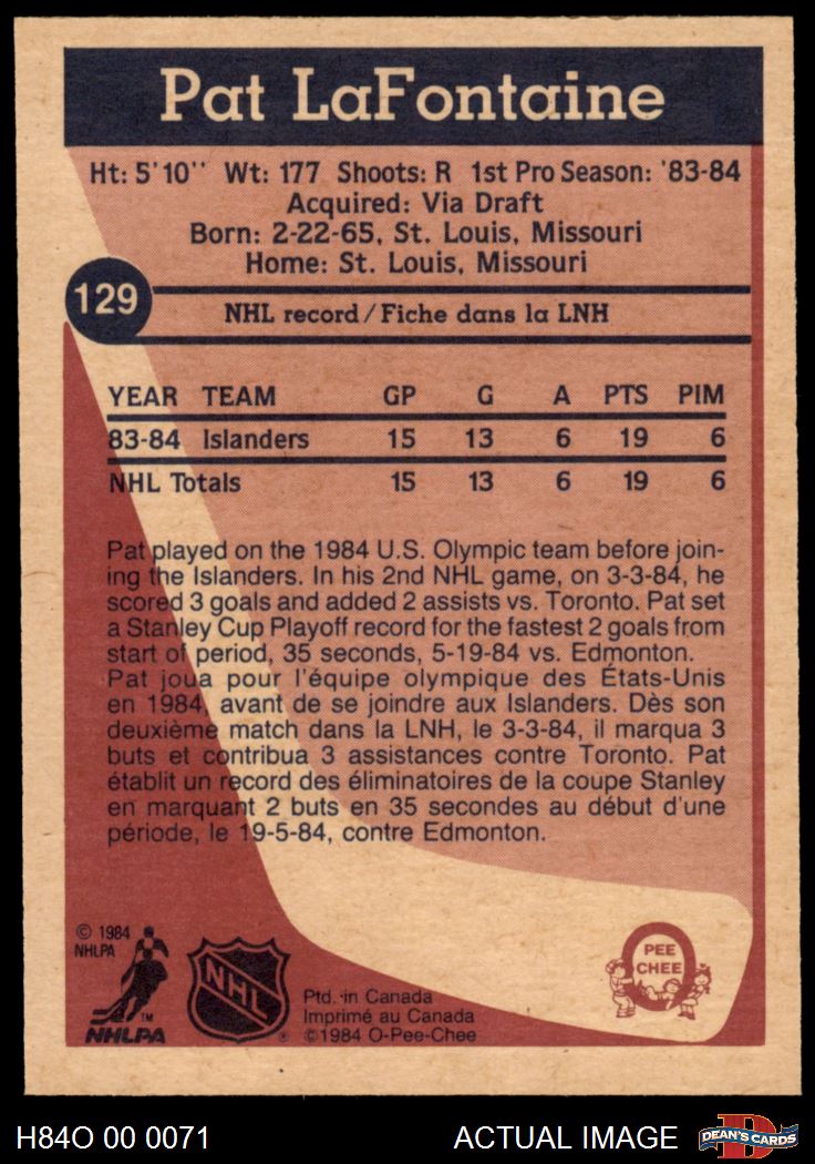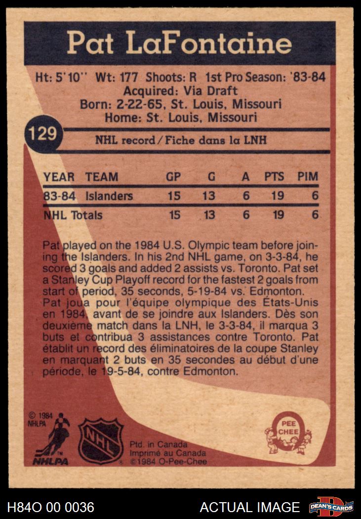 1984 O-Pee-Chee #129 Pat LaFontaine 7 - NM