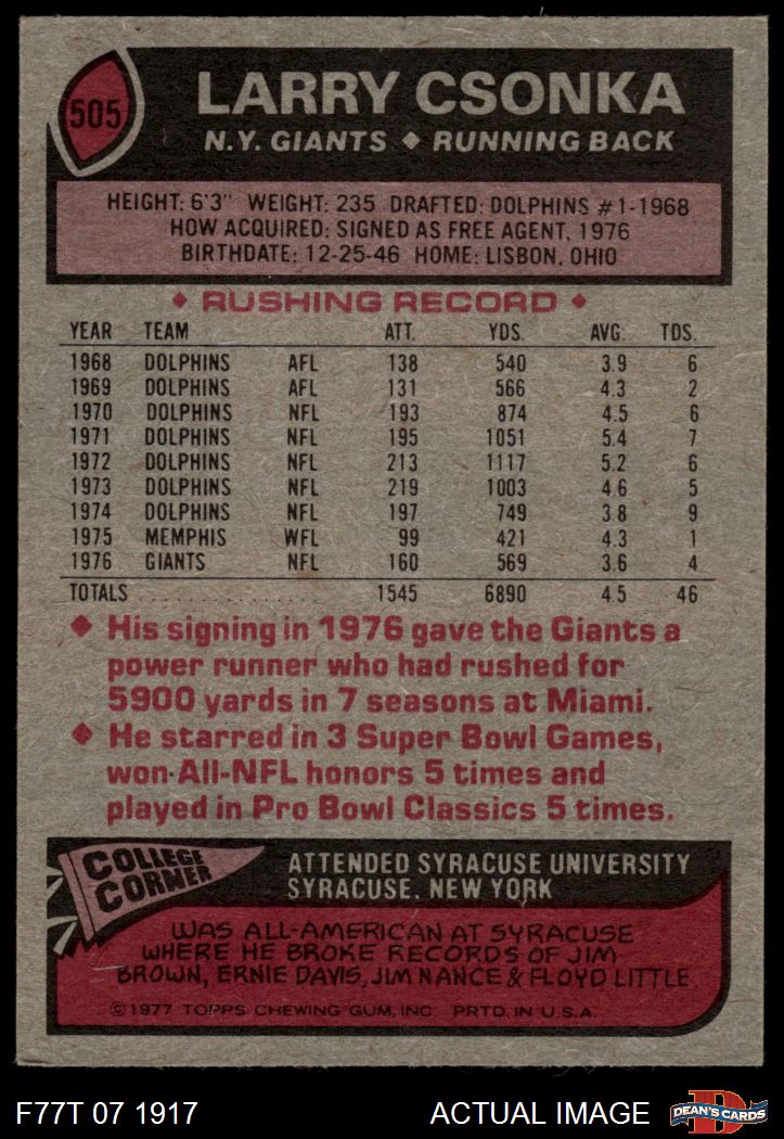1977 Topps #505 Larry Csonka 4 - VG/EX