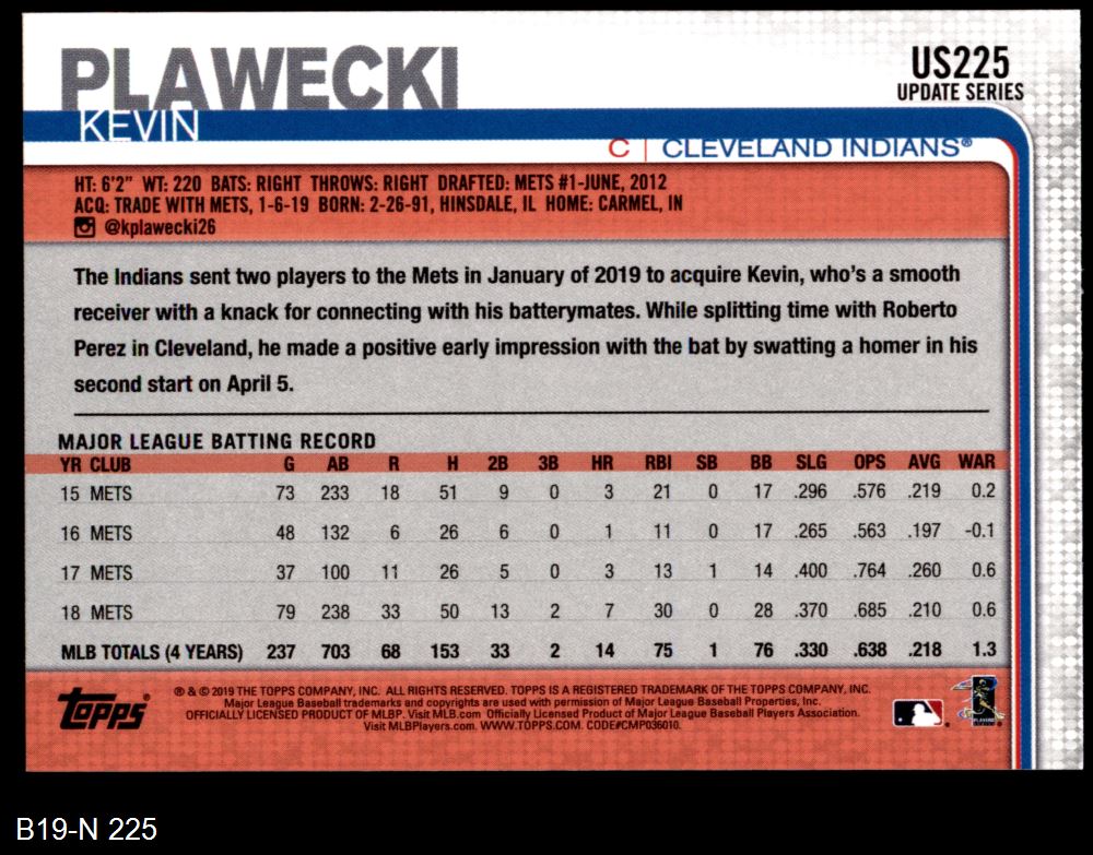 2019 Topps Update #225 Kevin Plawecki
