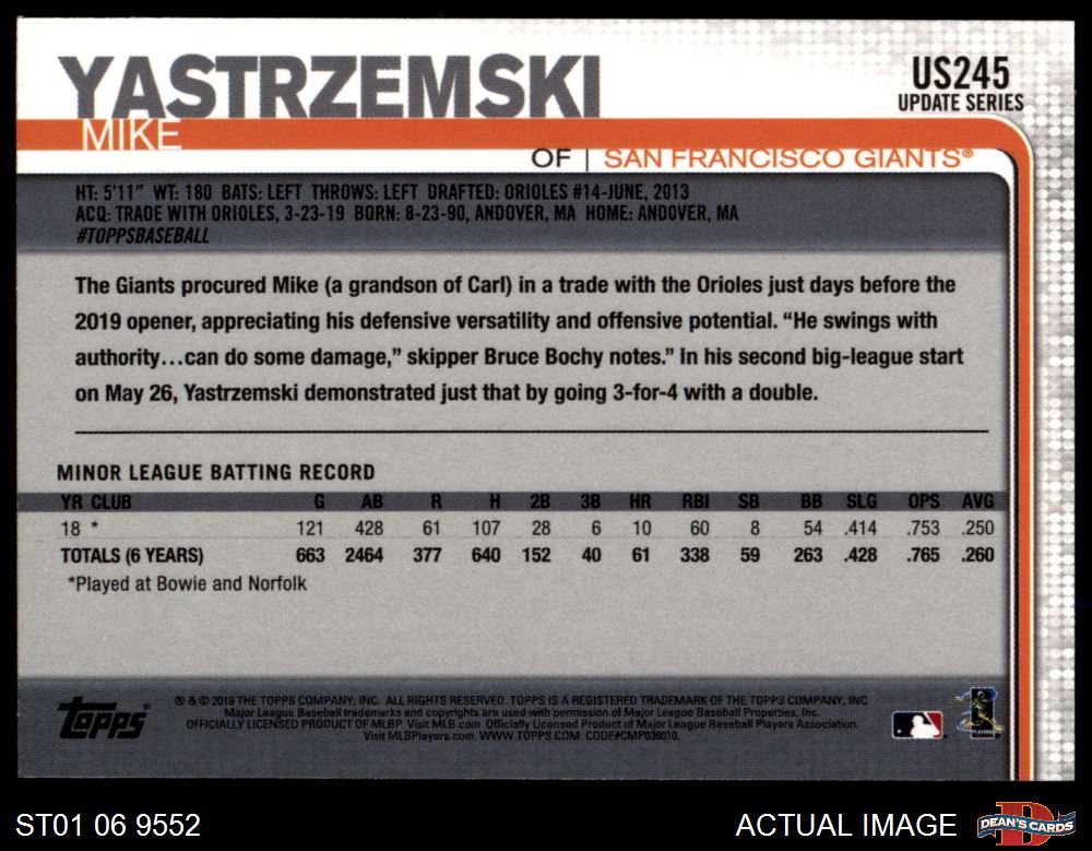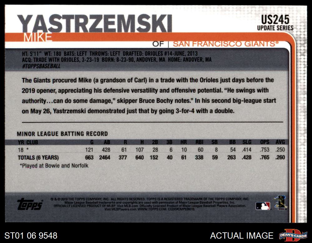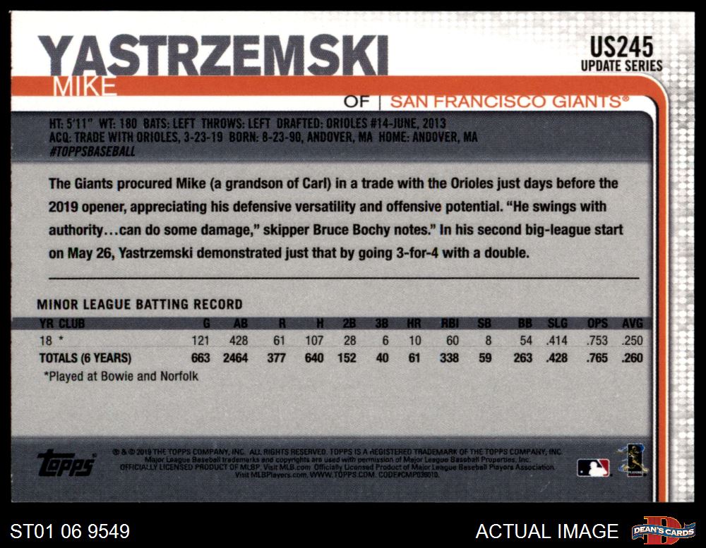 2019 Topps Update #245 Mike Yastrzemski 8 - NM/MT