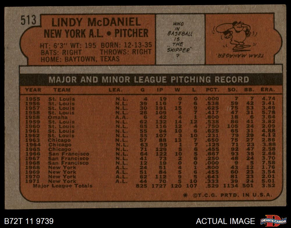 1972 Topps #513 Lindy McDaniel 3 - VG