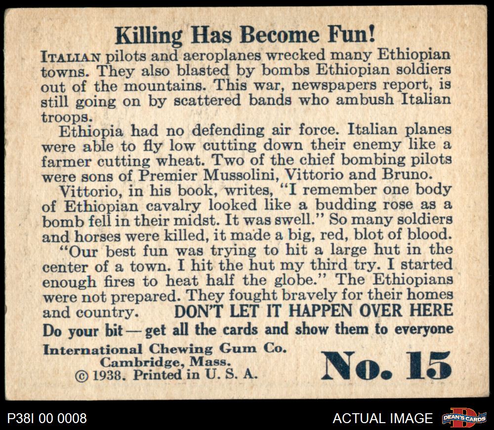 1938 International Gum #15 Killing Has Become Fun! 4 - VG/EX