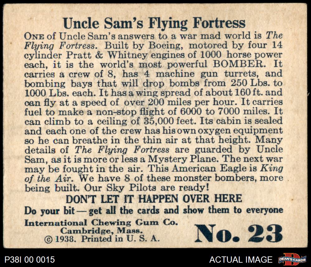 1938 International Gum #23 Uncle Sam's Flying Fortress 4 - VG/EX
