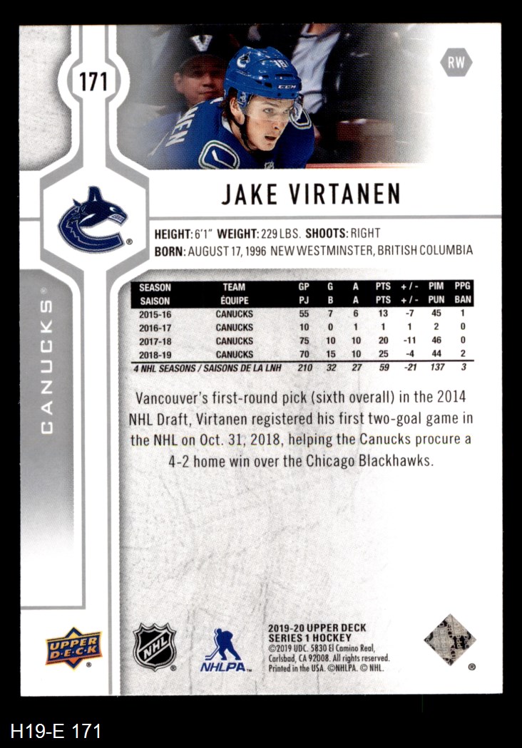 2019 Upper Deck #171 Jake Virtanen