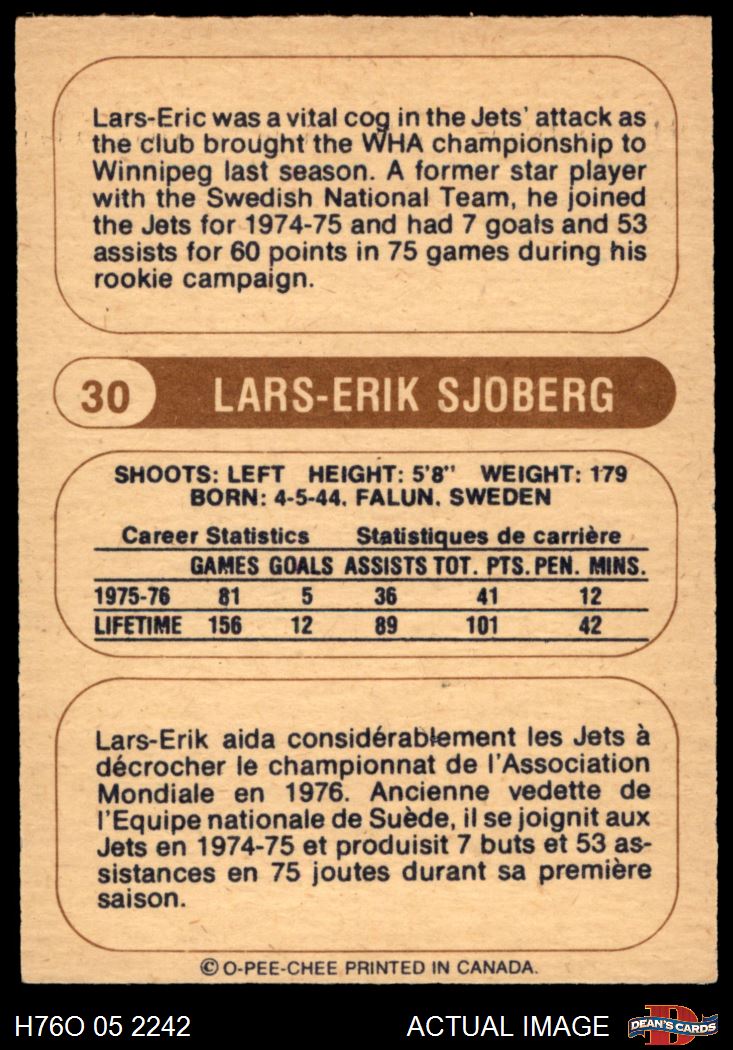 1976 O-Pee-Chee WHA #30 Lars-Erik Sjoberg 6 - EX/MT