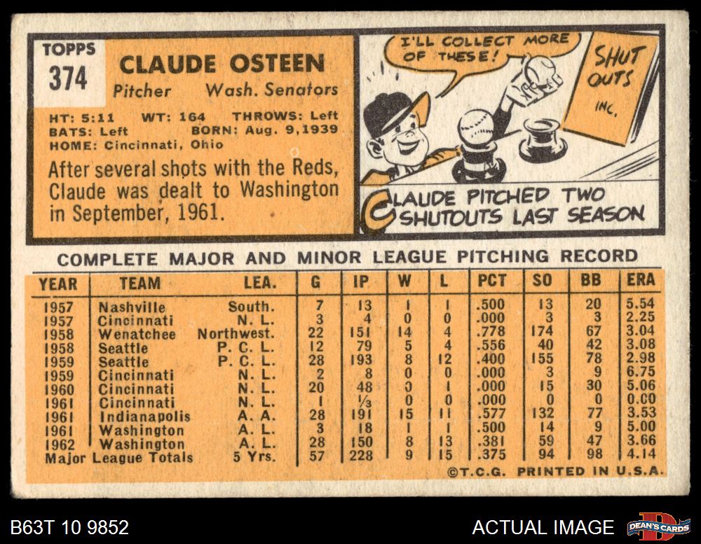 1963 Topps #374 Claude Osteen 2 - GOOD