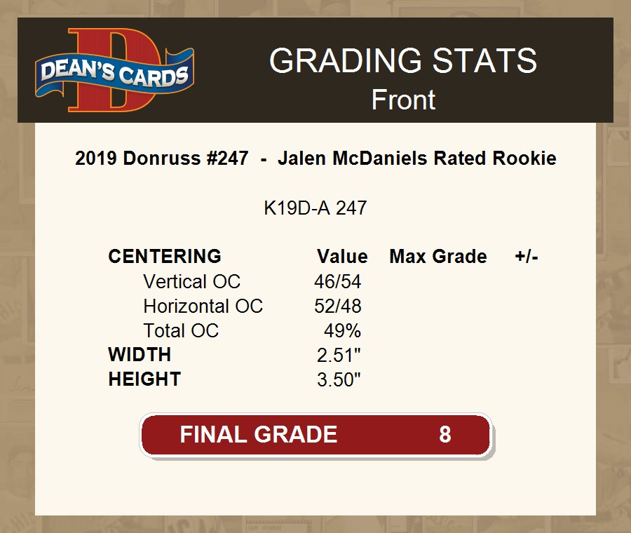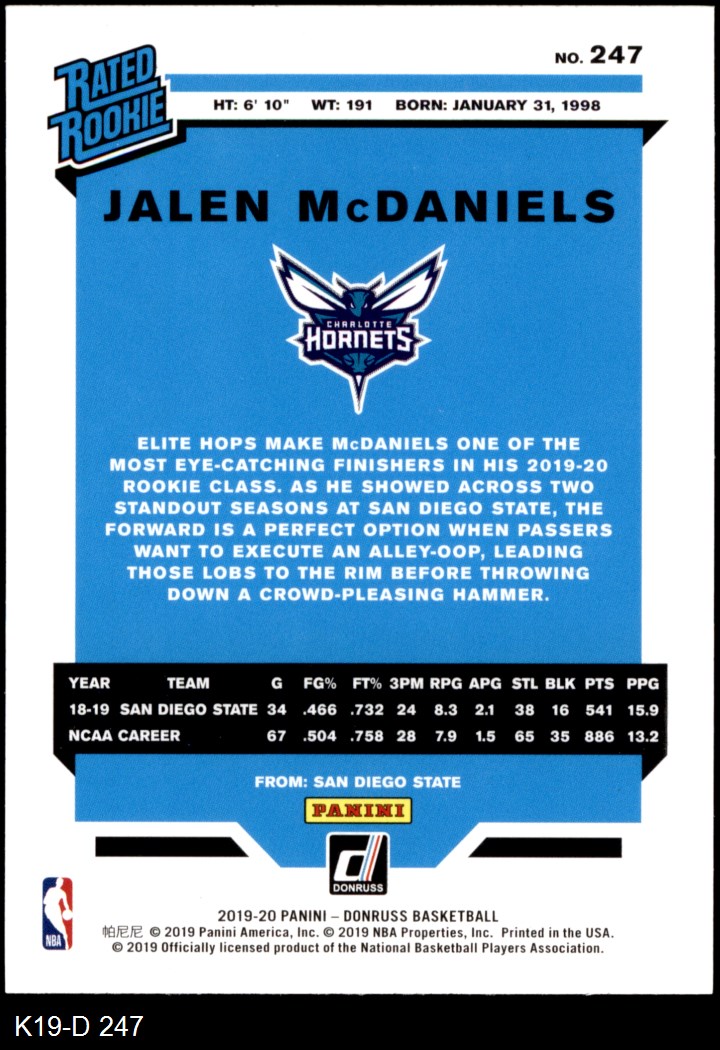 2019 Donruss #247 - Jalen McDaniels Rated Rookie 8 - NM/MT