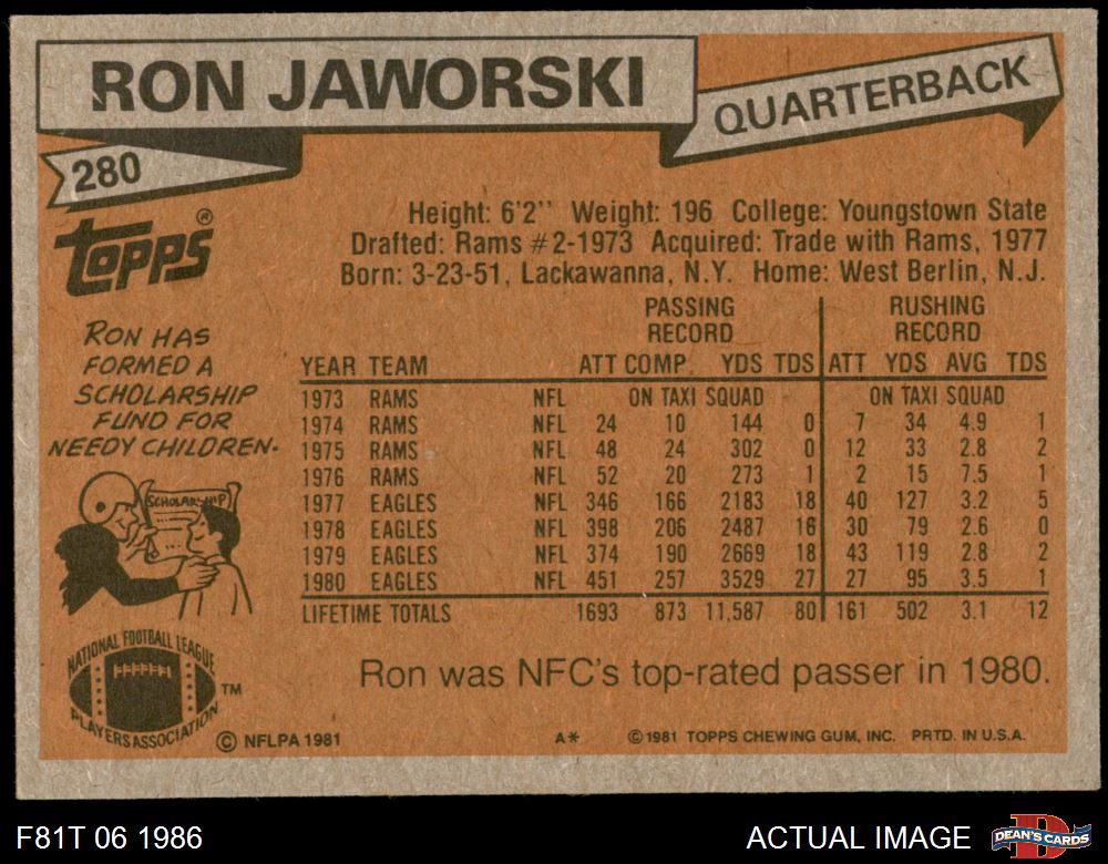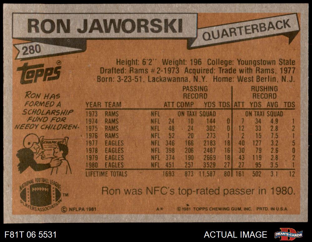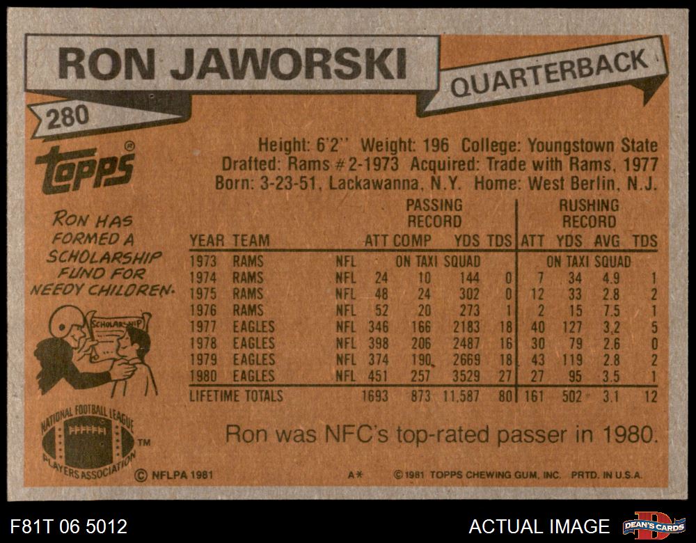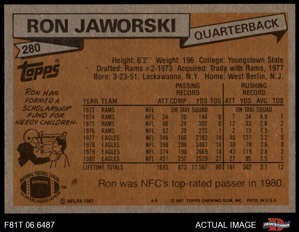 1981 Topps #280 Ron Jaworski