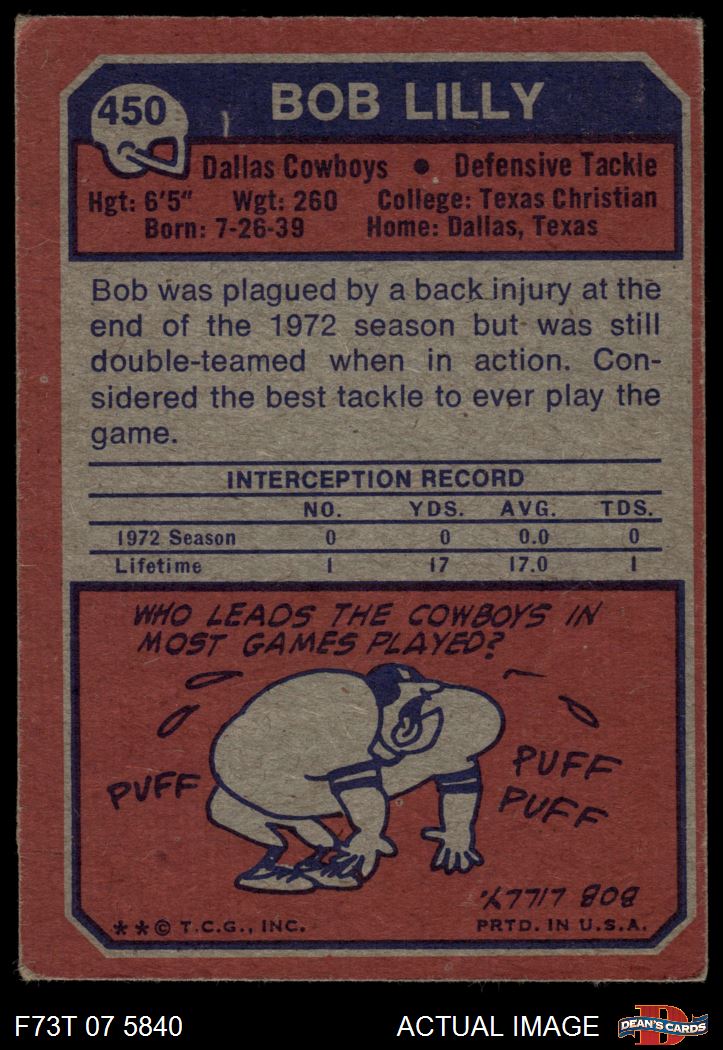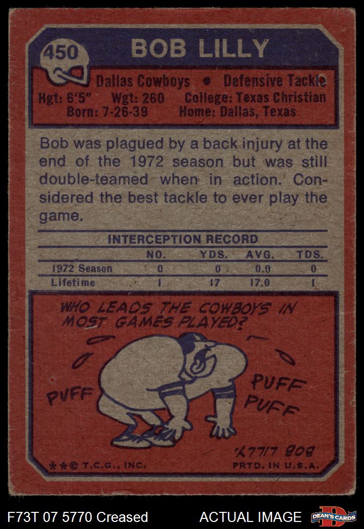 1973 Topps #450 Bob Lilly Front Thumbnail