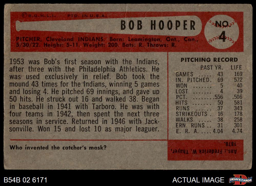 1954 Bowman #4 Bob Hooper 3 - VG