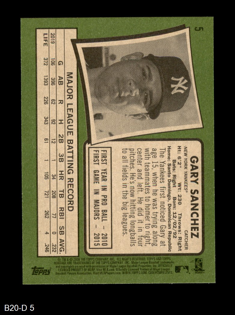 2020 Topps Heritage #5 Gary Sanchez
