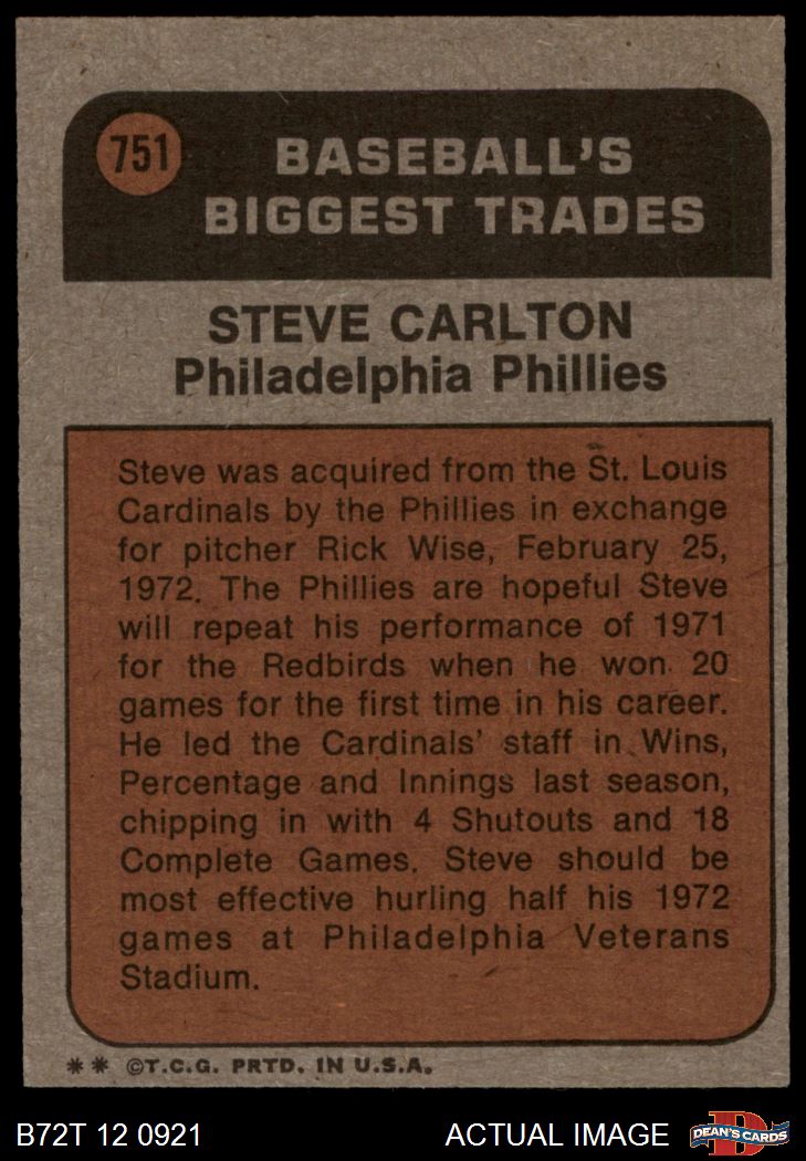 1972 Topps #751 - Steve Carlton Traded 4 - VG/EX