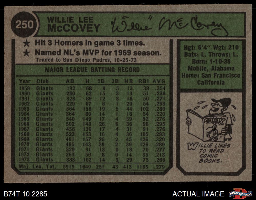 1974 Topps #250 SD Willie McCovey 6 - EX/MT