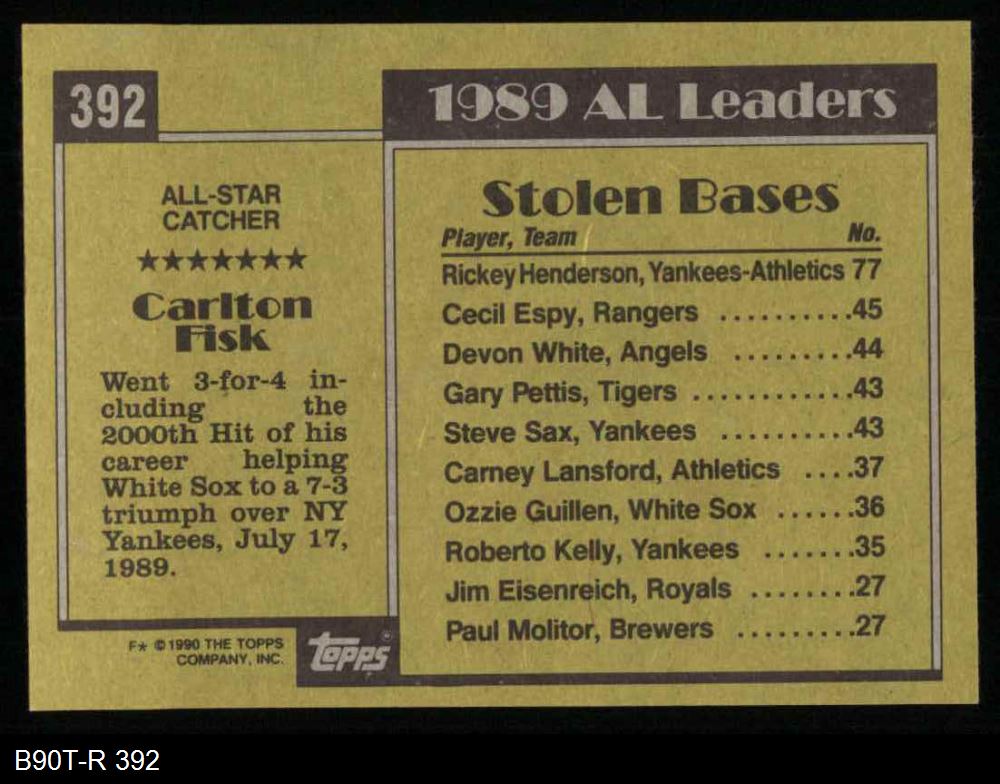 1990 Topps #392 - Carlton Fisk All-Star 8 - NM/MT