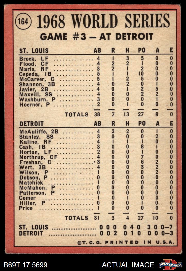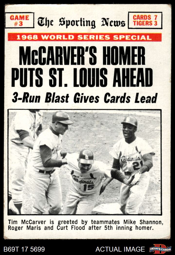1969 Topps #164 - Tim McCarver / Curt Flood / Roger Maris 1968 World Series - Game #3 - McCarver's Homer Puts St. Louis Ahead 1.5 - FAIR
