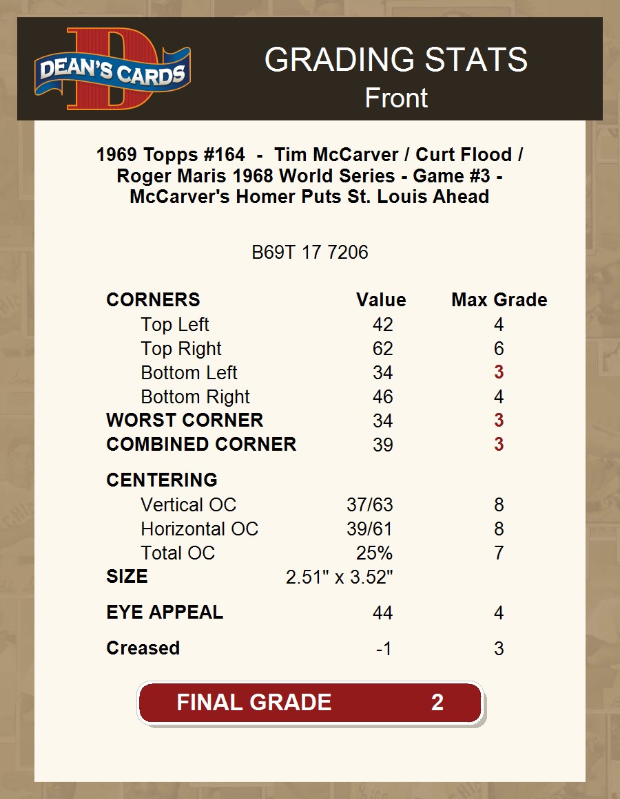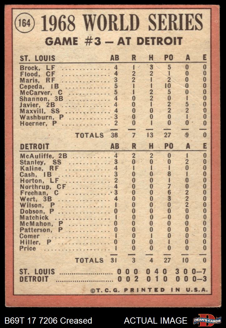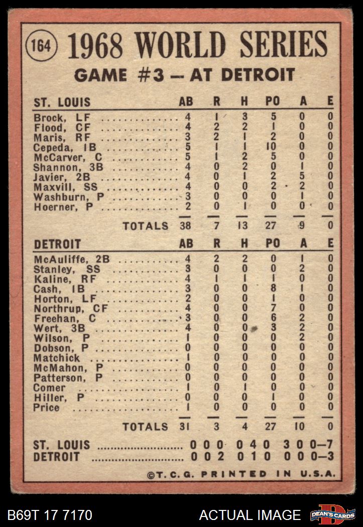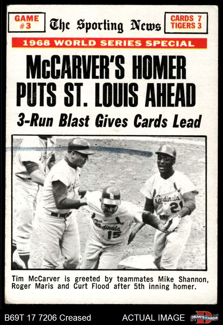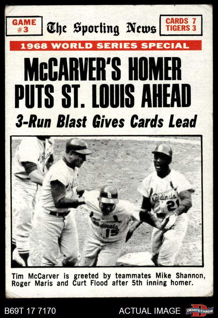 1969 Topps #164 - Tim McCarver / Curt Flood / Roger Maris 1968 World Series - Game #3 - McCarver's Homer Puts St. Louis Ahead 2 - GOOD