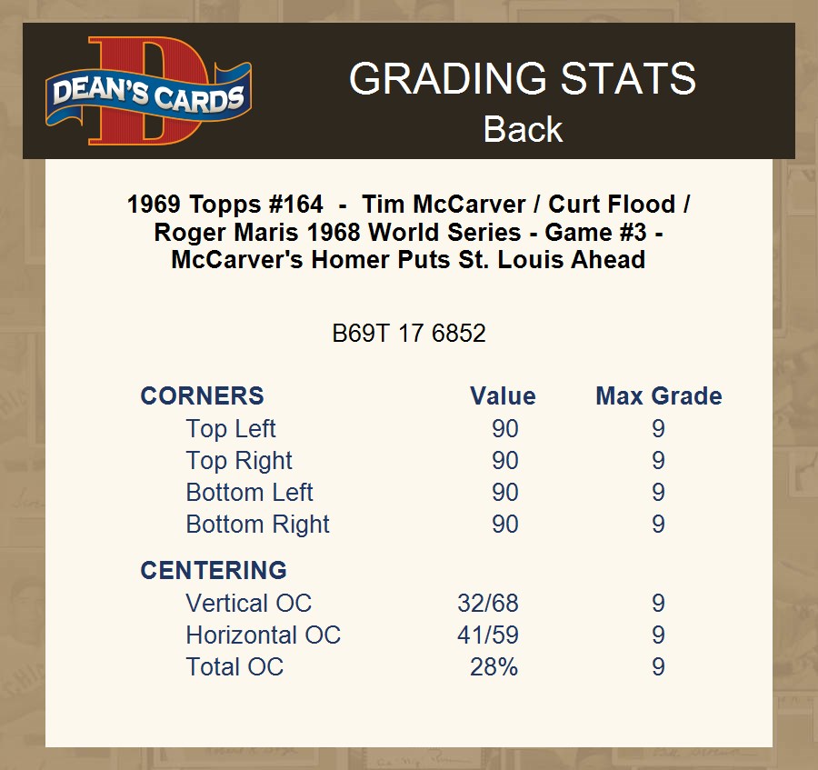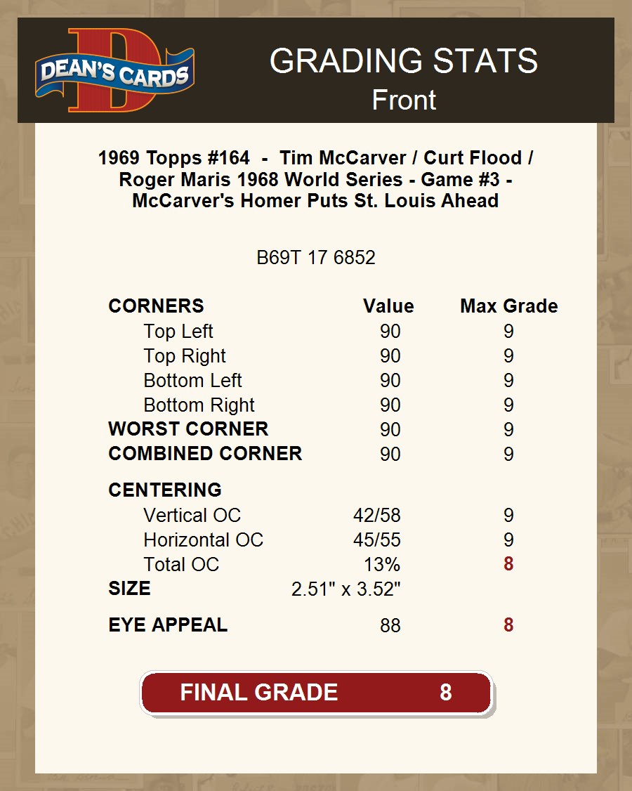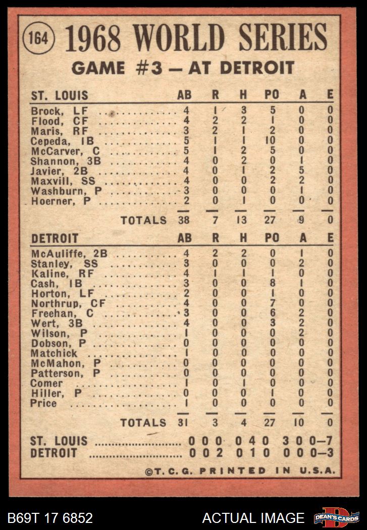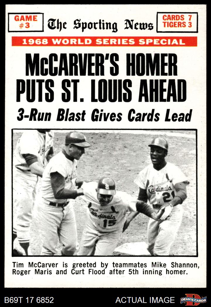 1969 Topps #164 - Tim McCarver / Curt Flood / Roger Maris 1968 World Series - Game #3 - McCarver's Homer Puts St. Louis Ahead 8 - NM/MT