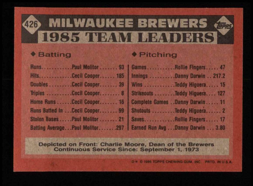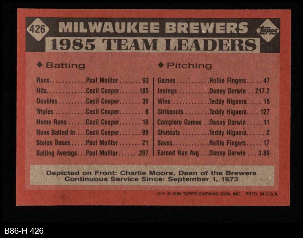 1986 Topps #426 Brewers Leaders 8 - NM/MT