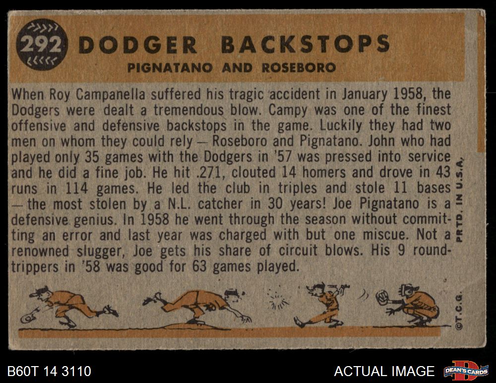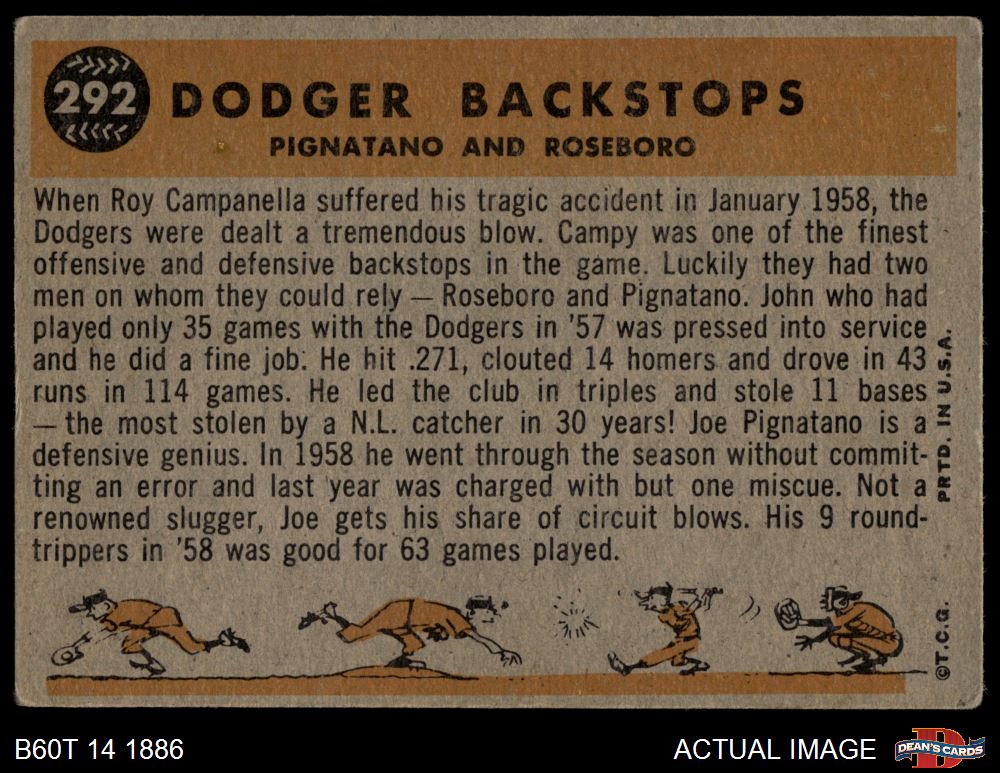 1960 Topps #292 - Joe Pignatano / John Roseboro Dodger Backstops 3 - VG