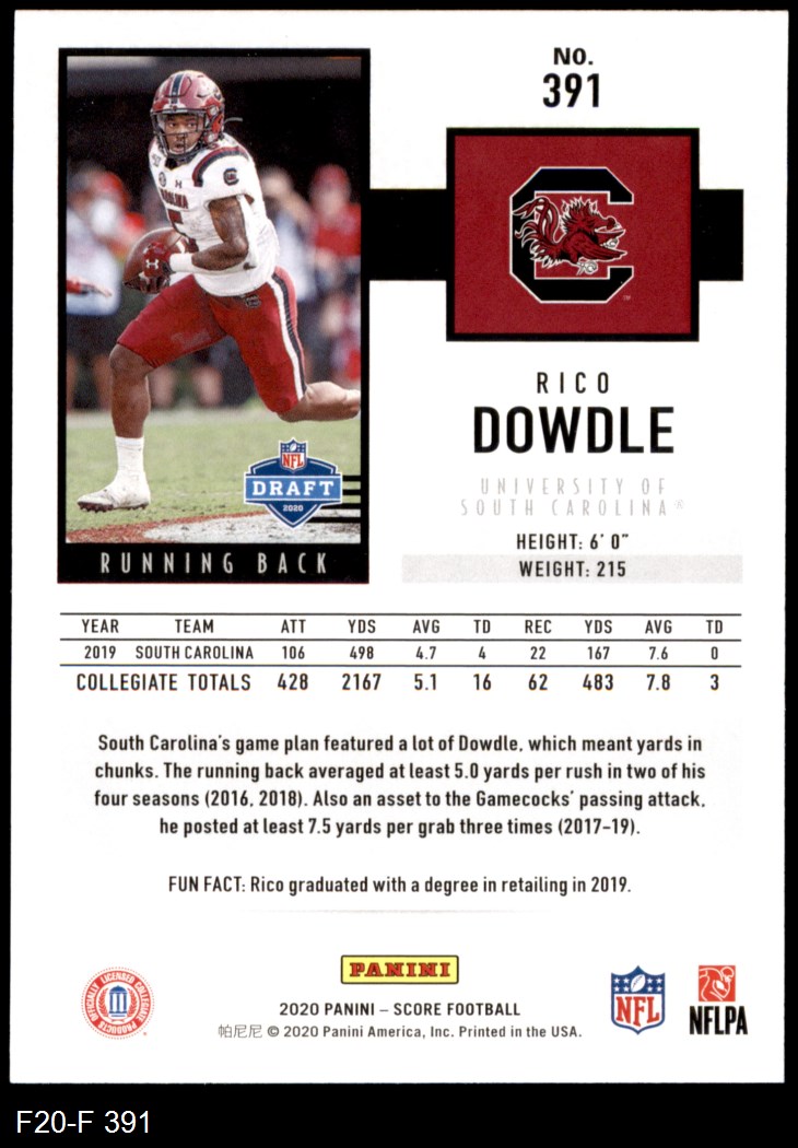 2020 Score #391 Rico Dowdle 8 - NM/MT