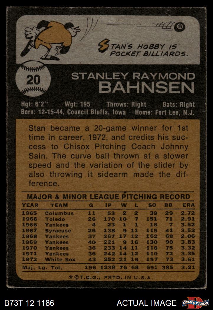 1973 Topps #20 GAP Stan Bahnsen 4 - VG/EX