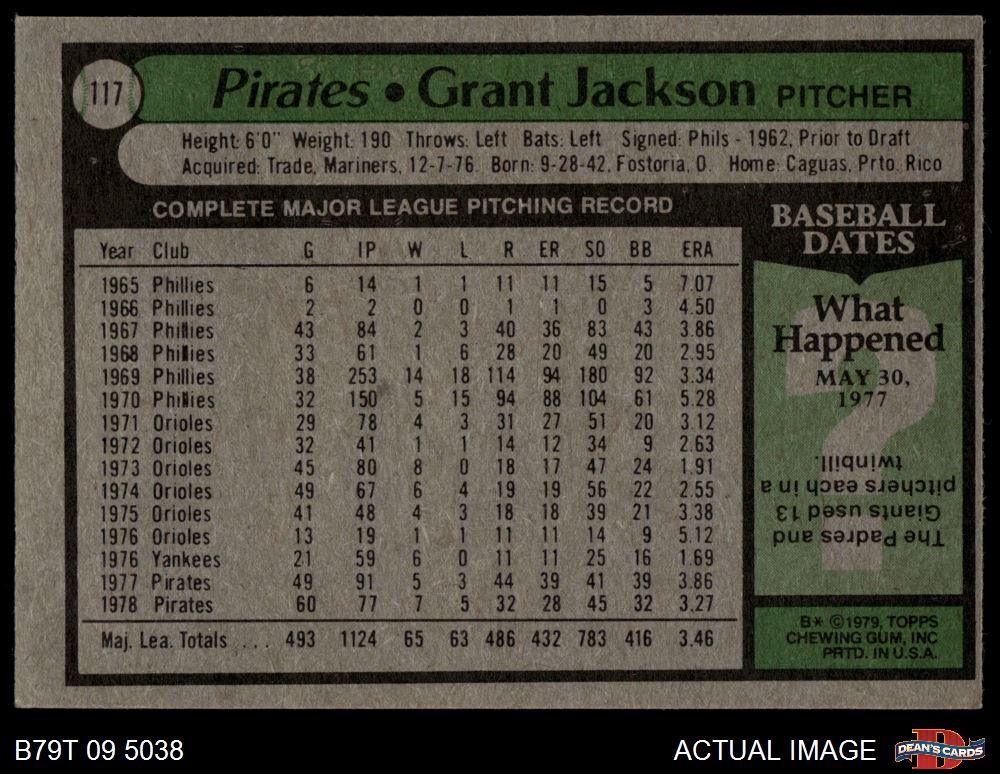 1979 Topps #117 Grant Jackson