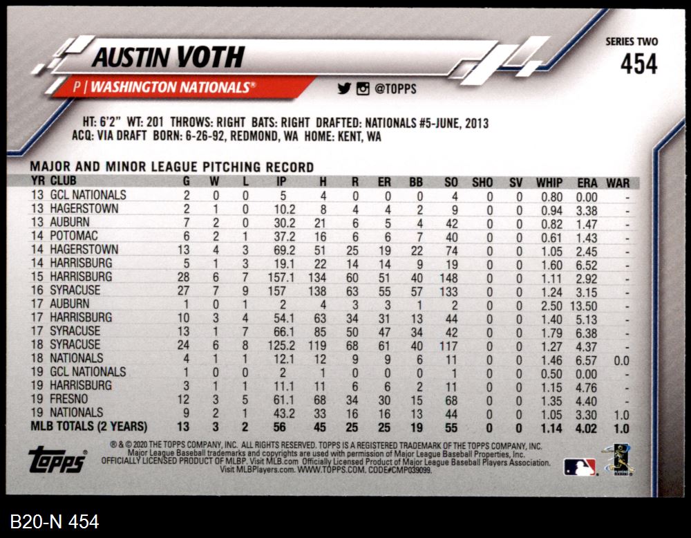 2020 Topps #454 Austin Voth 8 - NM/MT