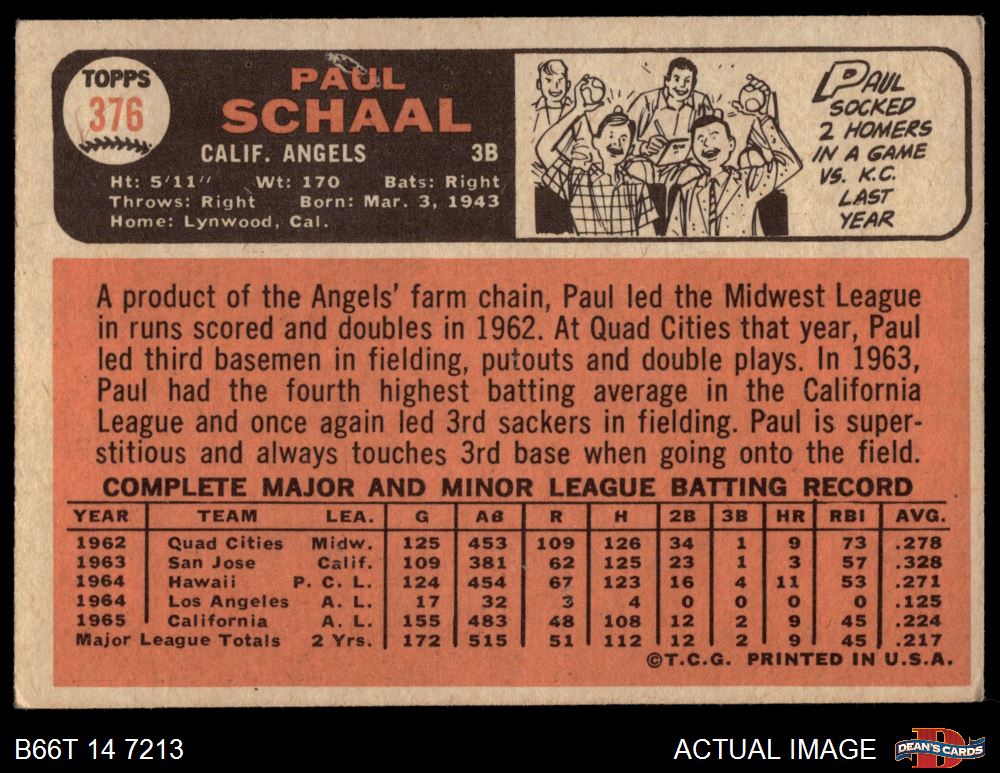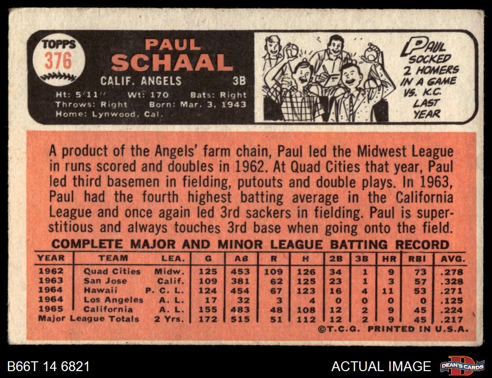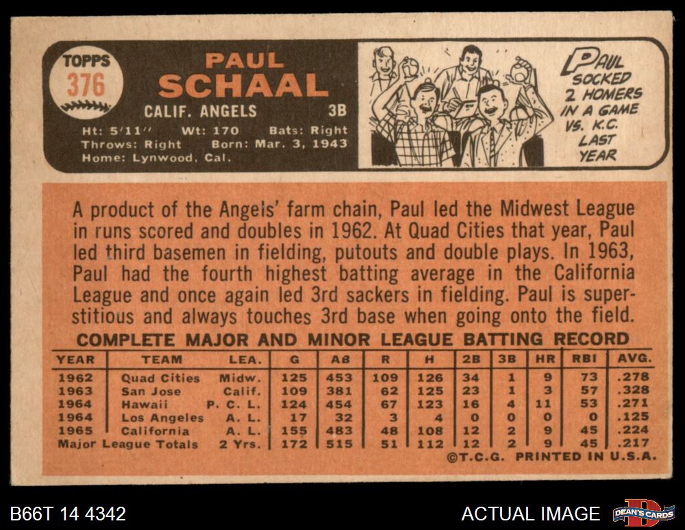 1966 Topps #376 Paul Schaal