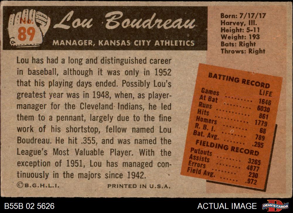 1955 Bowman #89 Lou Boudreau 4 - VG/EX