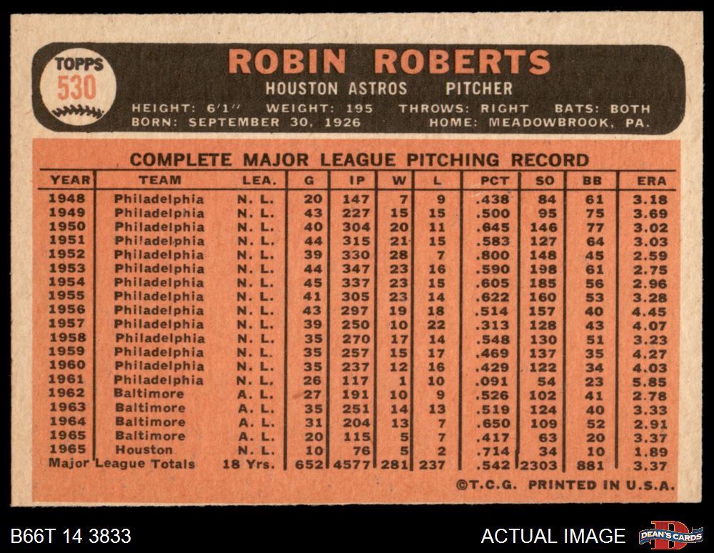 1966 Topps #530 Robin Roberts 4 - VG/EX