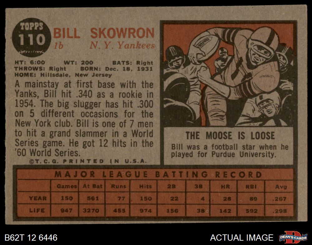 1962 Topps #110 GRN Bill Skowron 4 - VG/EX