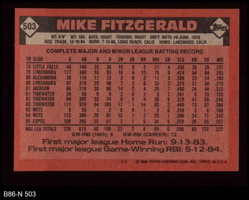1986 Topps Baseball Cards (4,798 available)1986 Topps Expos (311 available)
