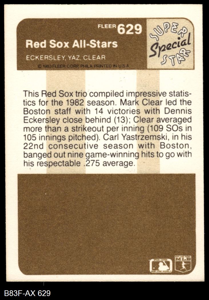 1983 Fleer #629 Carl Yazstrzemski / Dennis Eckersley / Mark Clear