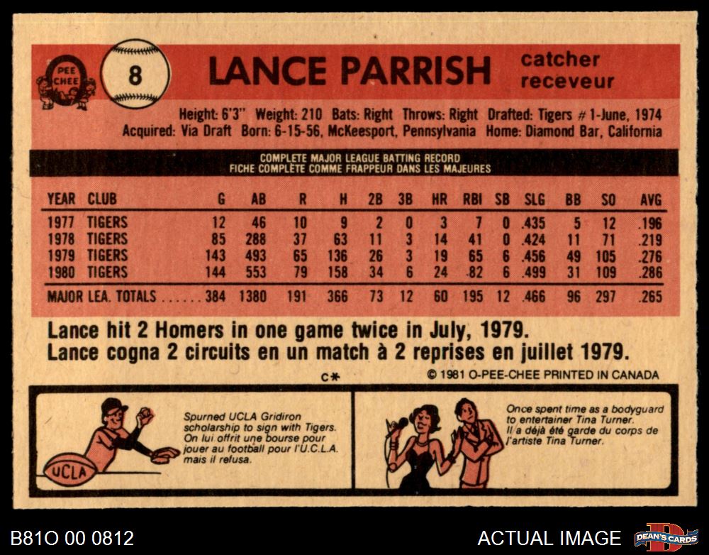 1981 O-Pee-Chee #8 Lance Parrish