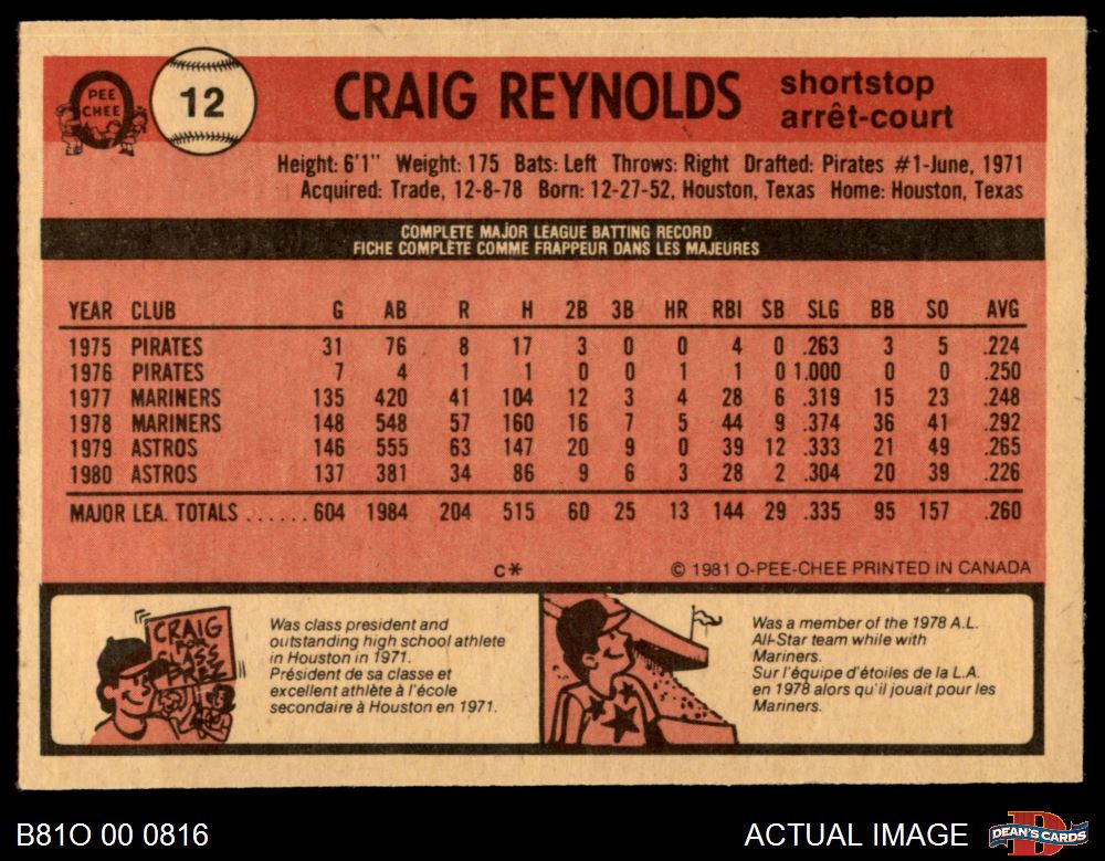 1981 O-Pee-Chee #12 Craig Reynolds 8 - NM/MT