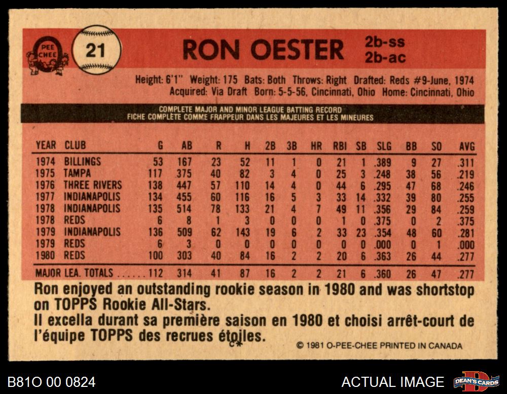 1981 O-Pee-Chee #21 Ron Oester 7 - NM