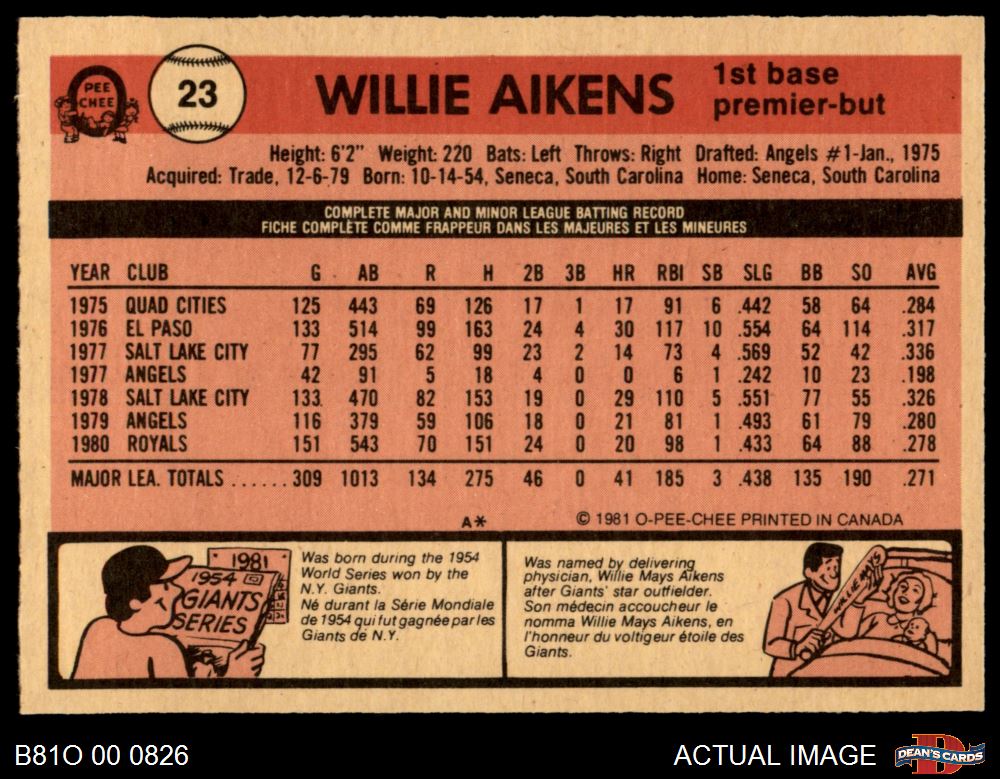 1981 O-Pee-Chee #23 Willie Aikens 7 - NM