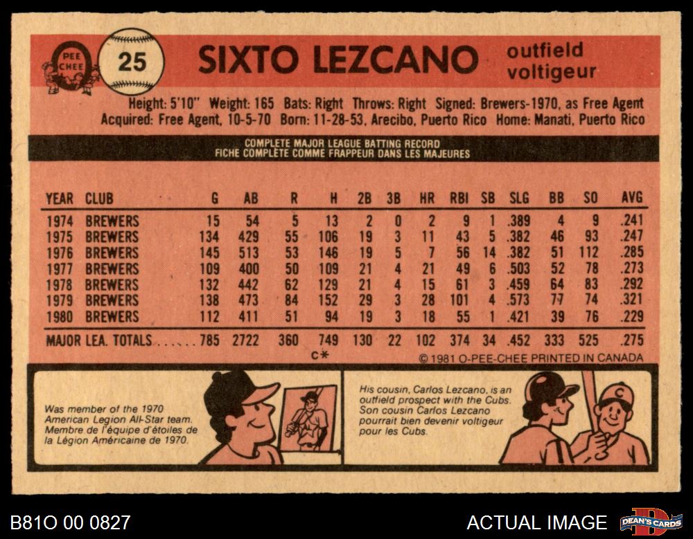 1981 O-Pee-Chee #25 Sixto Lezcano 8 - NM/MT