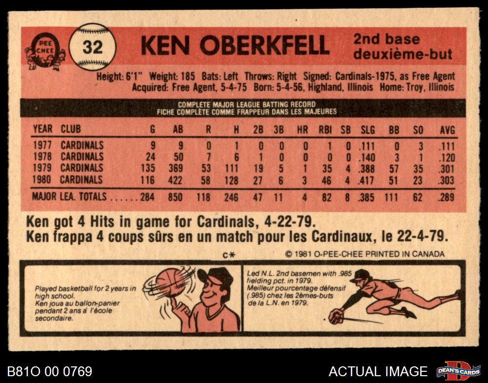 1981 O-Pee-Chee #32 Ken Oberkfell 7 - NM